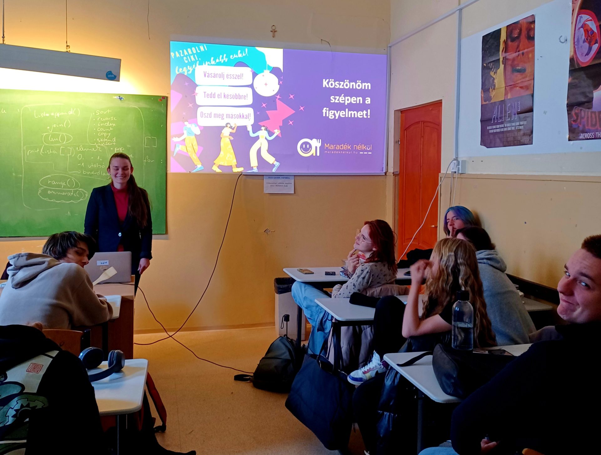 Az Újpesti Bródy Imre Gimnázium adott otthont Maradék nélkül foglalkozásunknak, amelyet a Fenntarthatósági Témahét keretében tartottunk meg 2024. április 24-én. Az órákon a 9.DÁ és a 10.M osztályok diákjai és tanárai – összesen 44 tanuló és 3 pedagógus – vettek részt aktívan.