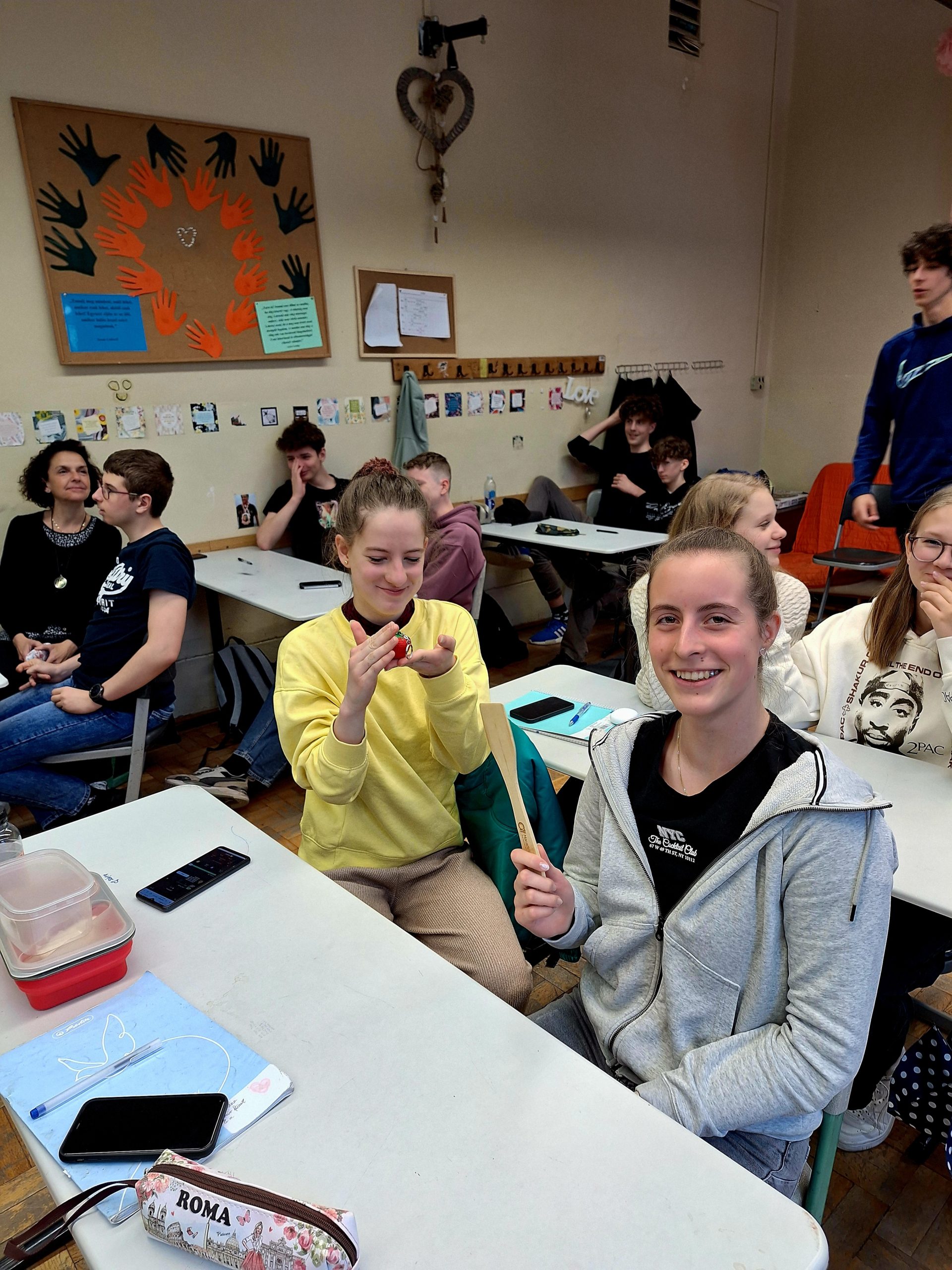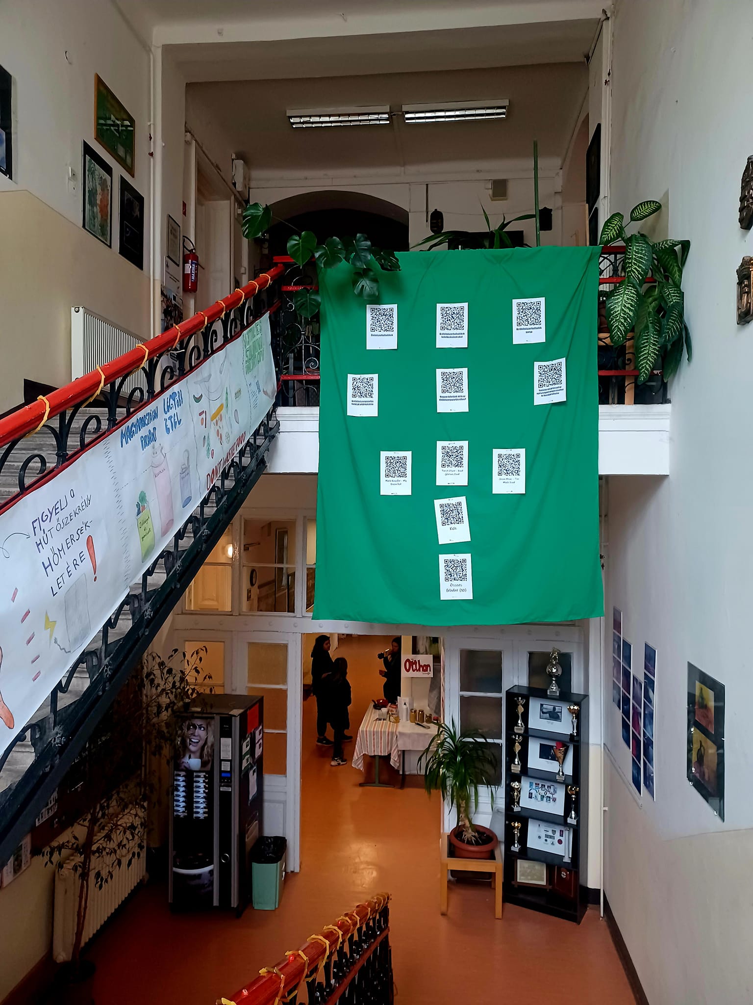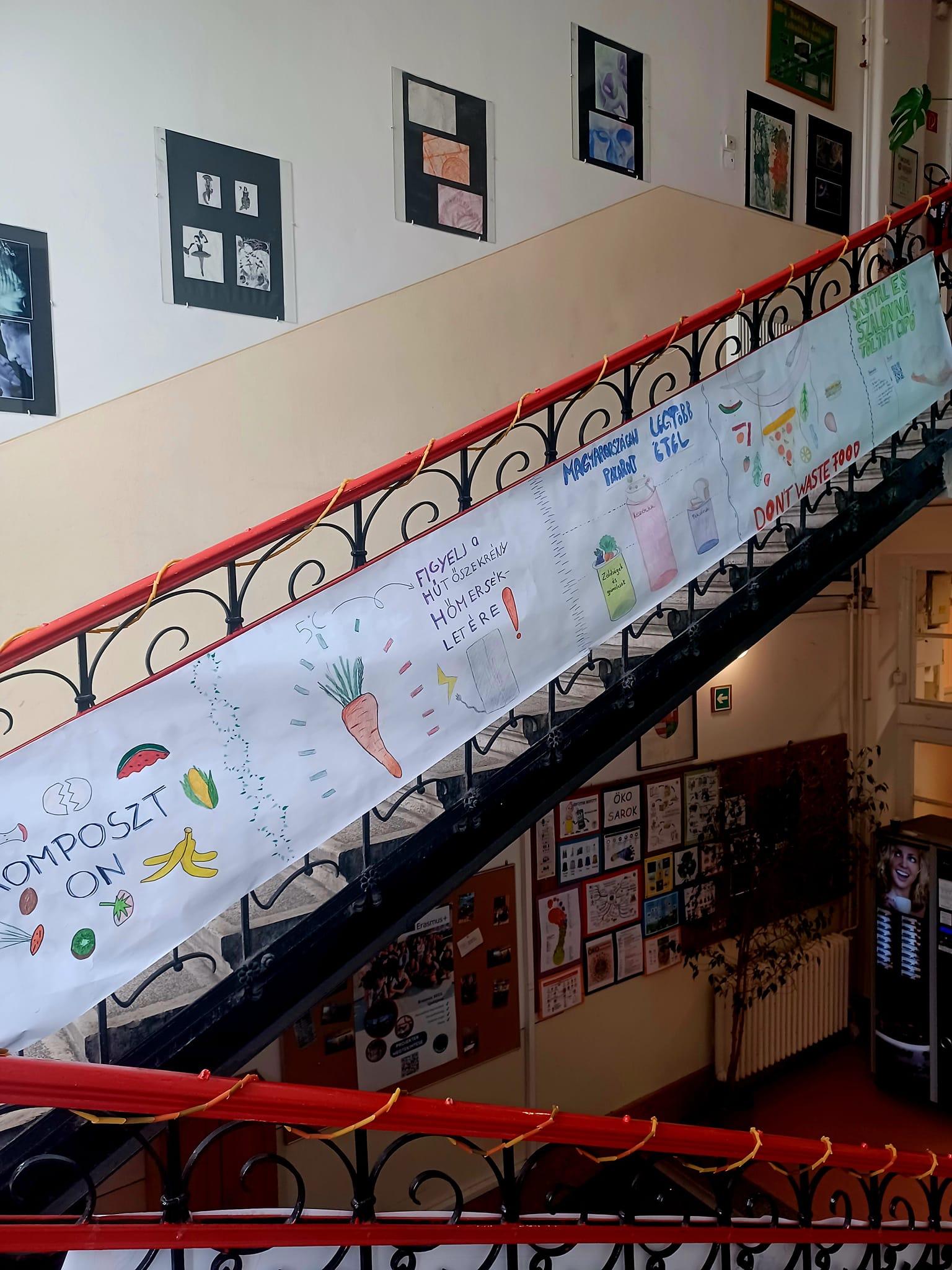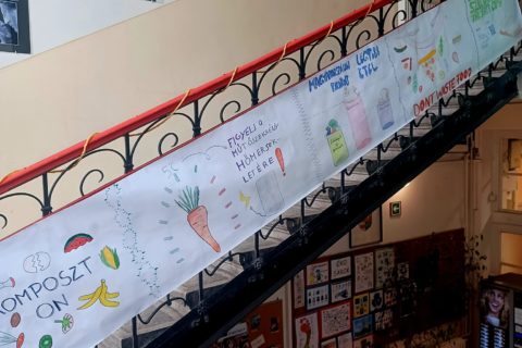 Nem a Maradék nélkül foglalkozás volt az egyetlen alkalom, amikor szó esett az élelmiszerpazarlásról, ugyanis az újpesti suliban egész héten ezzel a témával foglalkoztak. Az iskolai környezet maga is inspiráló volt: a folyosókon és a lépcsőházak mentén elhelyezett figyelemfelkeltő és kreatív installációk még inkább ráirányították a figyelmet az élelmiszerpazarlás témájára, amelyekről képeket is megosztunk cikkünk galériájában. Emellett a diákok maradékmentő főzős foglalkozáson is részt vehettek, ahol gyakorlati tapasztalatot szerezhettek az élelmiszer újrahasznosításának módjairól.