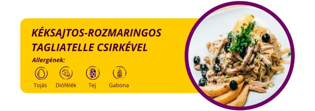 A workshopon főételként kéksajtos-rozmaringos, csirkés tagliatellet (allergének: tojás, dióféle, tej, glutén), desszertként pedig almás-körtés, bogyós gyümölcsös crumblet (allergének: tojás, glutén, tej, diófélék, mogyoró) fogunk készíteni. A workshopon lehetőség van korlátlan kávé, tea, üdítő és limonádé fogyasztására.