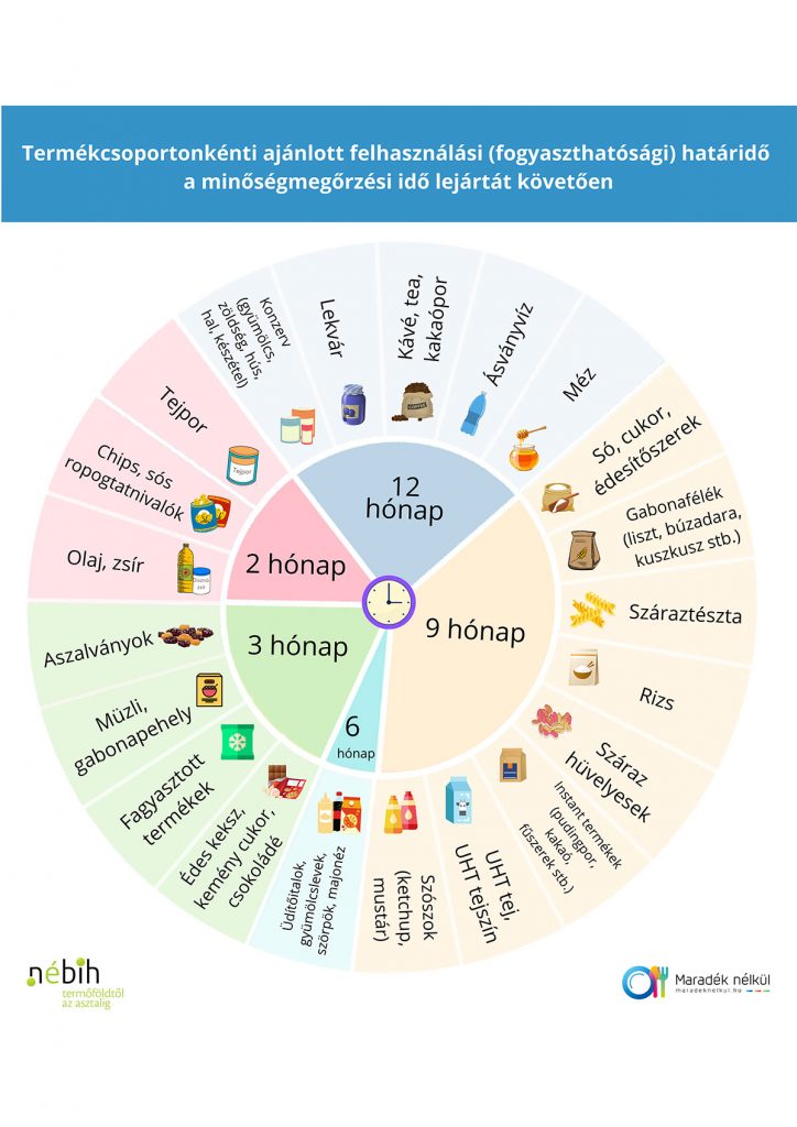 A lejárt élelmiszereket továbbra sem lehet kereskedelmi forgalomba hozni, függetlenül attól, hogy milyen típusú dátumjelölést találunk rajtuk. Az Európai Unióban azonban egy friss jogszabály-módosításnak köszönhetően mostantól minden tagállamban adományozhatóvá válnak a lejárt minőségmegőrzési idejű termékek. Sokakban kétséget ébreszthet azonban, hogy az egyes termékek lejárat után még mennyi ideig maradnak biztonságosak. Szakmai útmutatónk segítséget nyújthat ezzel kapcsolatban a felajánlóknak és a karitatív szervezeteknek. Az útmutatóban szereplő időszakok azonban a fogyasztók számára is hasznosak lehetnek. A megadott időszakok csak a minőségmegőrzési idővel rendelkező termékekre alkalmazhatók!