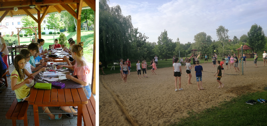 Amíg tartott a jó idő, strandröpi és fürdőzés volt a program. Este azonban leszakadt az ég, így az ügyességi játékok helyett activity és zenefelismerő kvíz következett. Elárulhatjuk, hogy ádáz, kiegyenlített küzdelem volt, ám végül a Tojásos nokedli ecetes salátával csapat nyert.