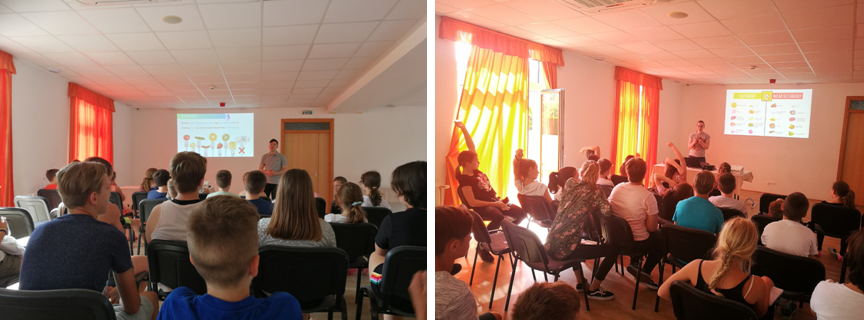 A torna után gazdagon megreggelizett a nagy csapat, majd az első Maradék nélkül előadást hallgatták meg a fiatalok. Be kell vallanunk, nem sok mindent kellett tanítanunk, a kezek folyton a magasban voltak és jobbnál jobb válaszokat hallhattunk az egész óra alatt. Ilyen ügyes csapatnak előadni nekünk is egy óriási élmény.