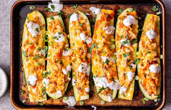 A cukkiniket mossuk meg, vágjuk félbe, a belsejüket kaparjuk ki, vágjuk fel kis darabokra és tegyük félre. Pirítsuk meg az apróra vágott hagymát, tegyük rá a húst, illetve a kikapart cukkini belsejét, fűszerezzük sóval, borssal. Krémesebb állag érdekében tegyünk bele tejfölt, majd töltsük meg a cukkiniket. A tetejüket szórjuk meg sajttal, majd helyezzük sütőpapírral kibélelt tepsire a csónakokat. Előmelegített sütőben körülbelül fél óráig sütjük 180°C-on.