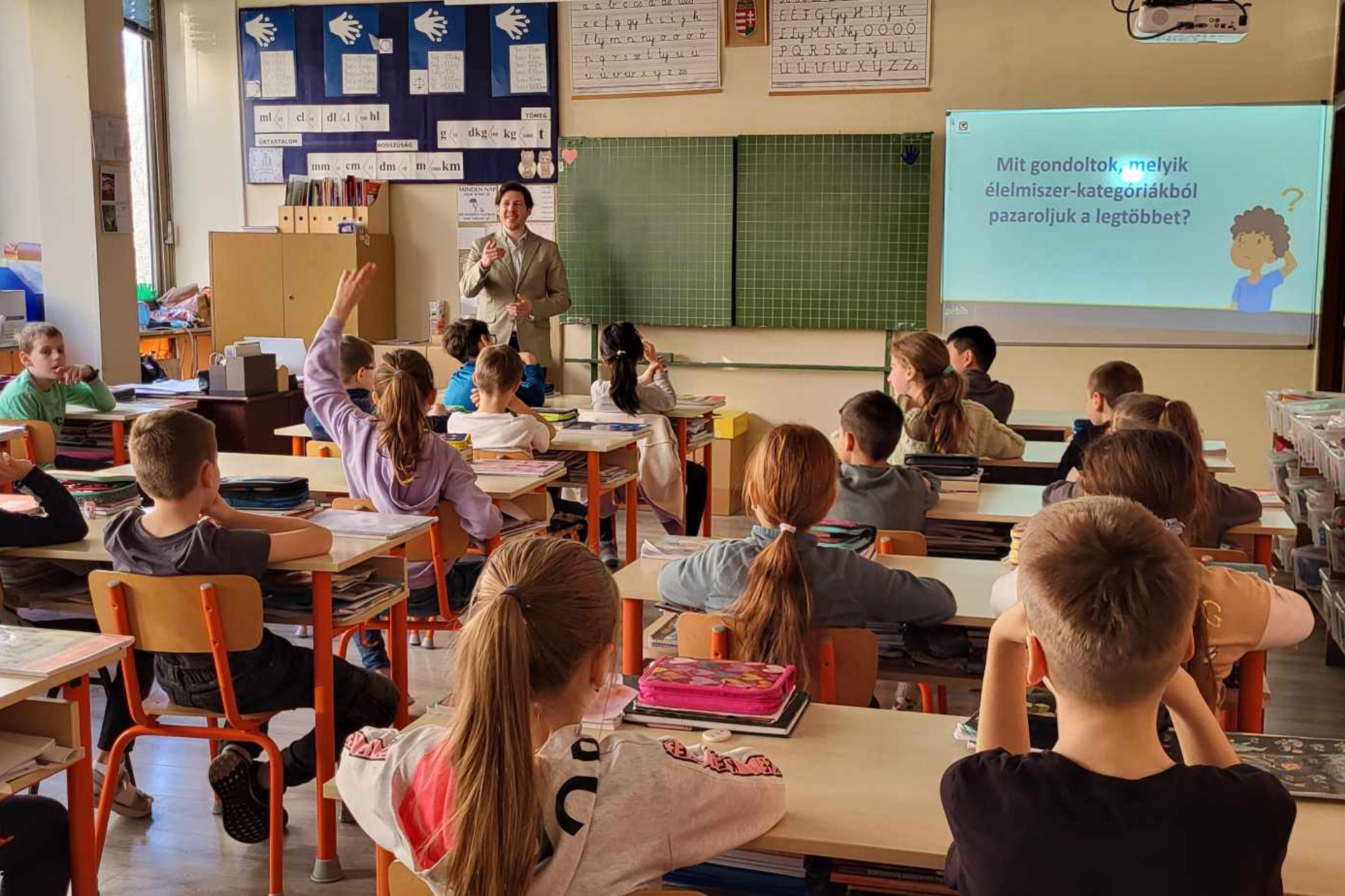 Két harmadikos osztály ismerte meg közelebbről a Nébih Maradék nélkül programjának élelmiszerhulladékokkal kapcsolatos eredményeit és élelmiszerpazarlás-csökkentési tippjeit. A gyerekek kifejezetten érdeklődőek és aktívak voltak, ökoiskoláról van szó, így sokan már találkoztak a fenntarthatósághoz kapcsolódó megoldásokkal, és az otthonukban vagy nagyszüleiknél is tesznek a maradékmentésért. A téli hónapokban az iskolában a gyümölcs jellemzően alma, amelyből a többletet mindkét osztályban egy külön ládában tárolják. A pedagógusok a szünetekben felszeletelnek néhány almát a gyerekeknek, a szeletek pedig gyorsan gazdára találnak. A további feleslegből pedig hazavisznek a gyerekek, így több esetben tartósított ételek vagy új fogások készülnek belőlük.