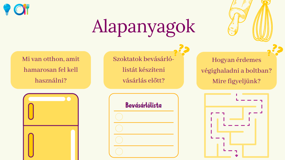 Az óra elején tisztáztuk a fontosabb alapelveket, miszerint az élelmiszer értékes és célunk az élelmiszerpazarlás csökkentése. Ugyanakkor hangsúlyoztuk, hogy az élelmiszerbiztonság a legfontosabb, hiszen az egészség megőrzése elsődleges szempont.