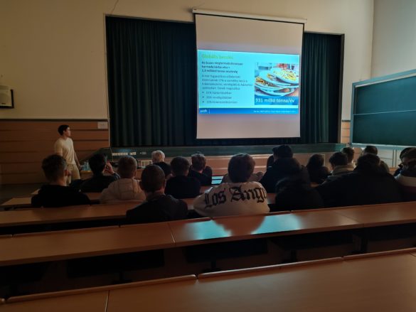 Ezt követően gyakorlati tanácsokat adtunk az élelmiszerpazarlás megelőzésére, mint például az okos vásárlás, a maradékok felhasználása, adományozás, és a háziállatok etetése felesleggel. Kitértünk a komposztálásra is, ahol bemutattuk, hogy mely élelmiszer-maradékok komposztálhatóak és melyek nem. Az előadás egyik kiemelt pillanata volt a házi gilisztakomposztálók bemutatása, amely kezdetben szkeptikus fogadtatásra talált, de hamar belátták a diákok ennek hasznosságát. Az eseményt egy izgalmas kvízzel zártuk, ahol a diákok megmutathatták, mennyire figyeltek az előadás során. A verseny élénk részvétellel zajlott, és szoros eredmények születtek.
