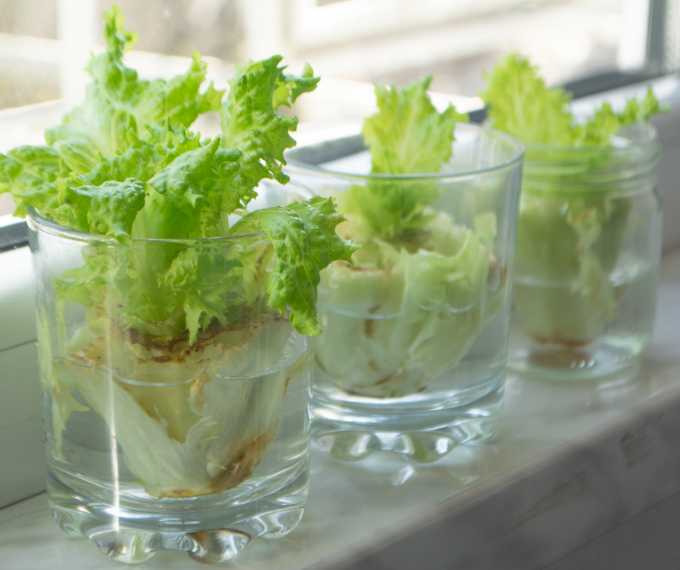 A salátavég is csodákra képes, ha az aljától levágsz egy körülbelül 4-5 centiméteres darabot és szintén egy pohár vízbe állítod. Félig/háromnegyedig lepje el víz és cseréld naponta. Néhány nap után elkezdenek nőni a levelei, amelyeket rögtön tehetsz is a salátádhoz vagy a szendvicsedbe.